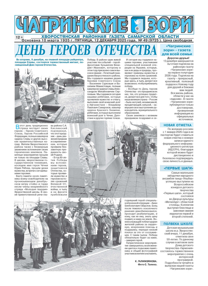 Чагринские зори за 12 декабря 2025 год 7 пол.